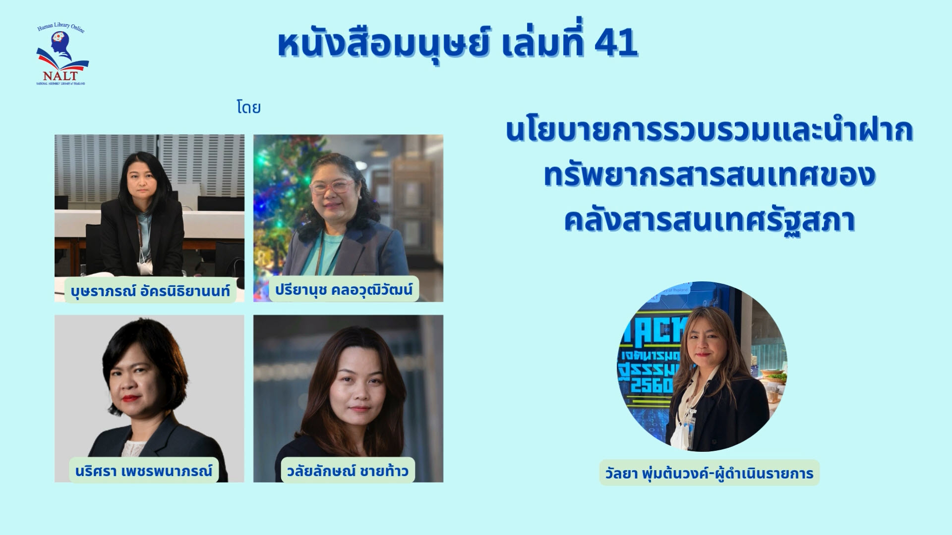 หนังสือมนุษย์ เล่มที่ 41 นโยบายการรวบรวมและนำฝากทรัพยากรสารสนเทศของคลังสารสนเทศรัฐสภา